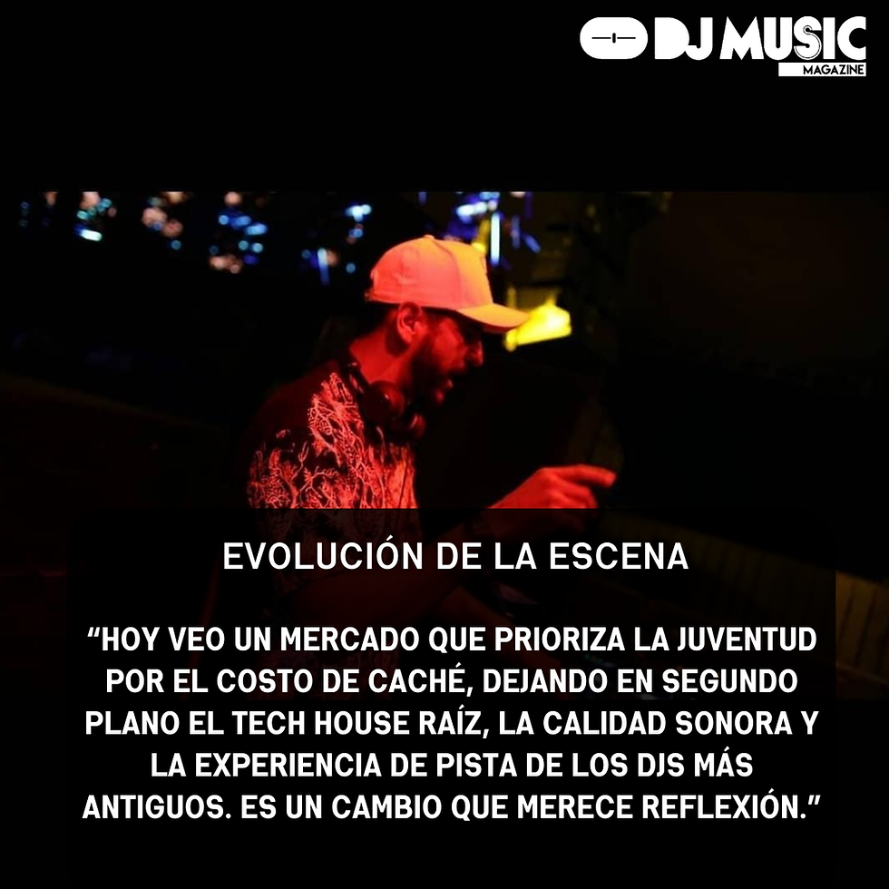 Reconhecido como um dos pioneiros do Tech House em Cuiabá e no Mato Grosso, o artista observa a evolução da cena eletrônica local com senso crítico. Para ele, o mercado atual busca cada vez mais a juventude por conta do custo de cachês, deixando em segundo plano o Tech House raiz, a qualidade sonora e a experiência de pista dos DJs mais antigos.